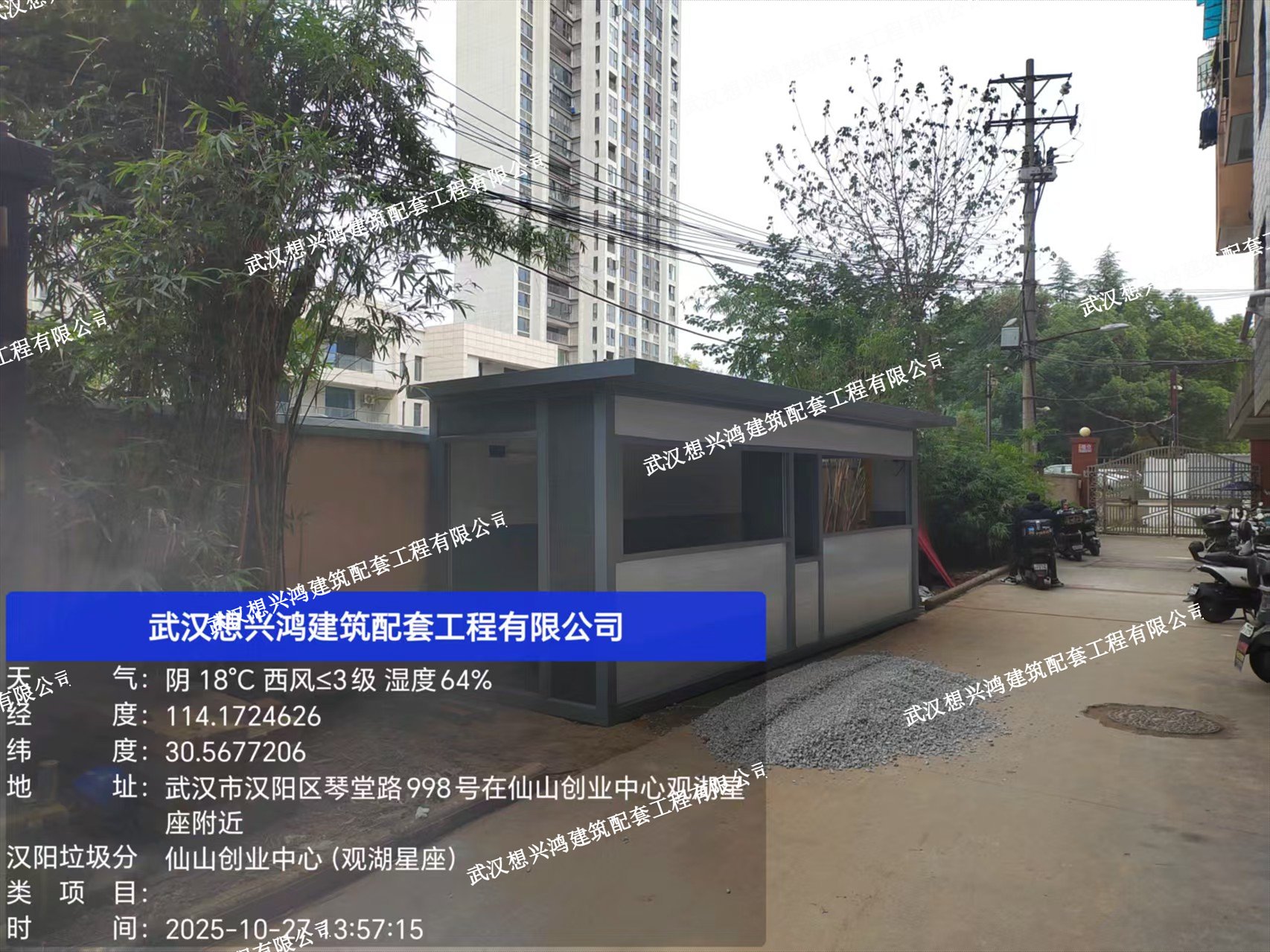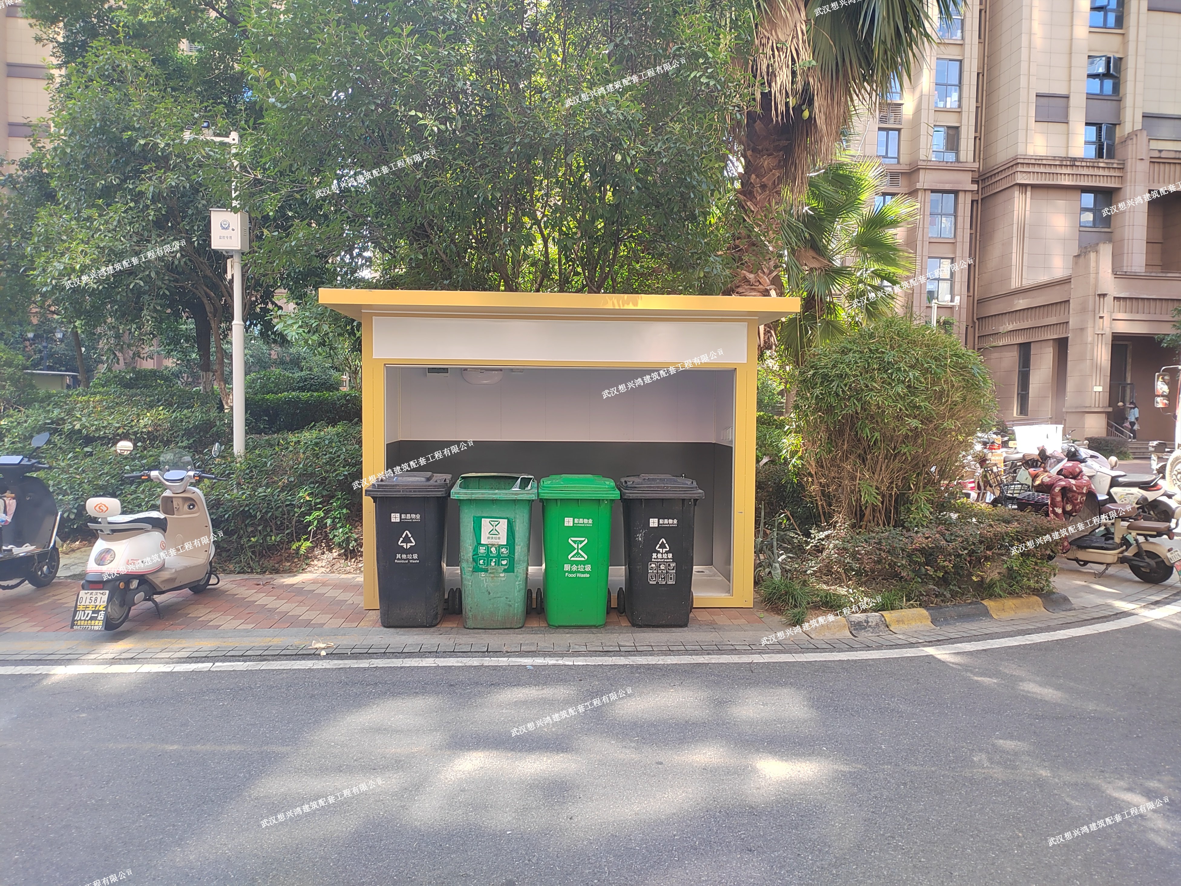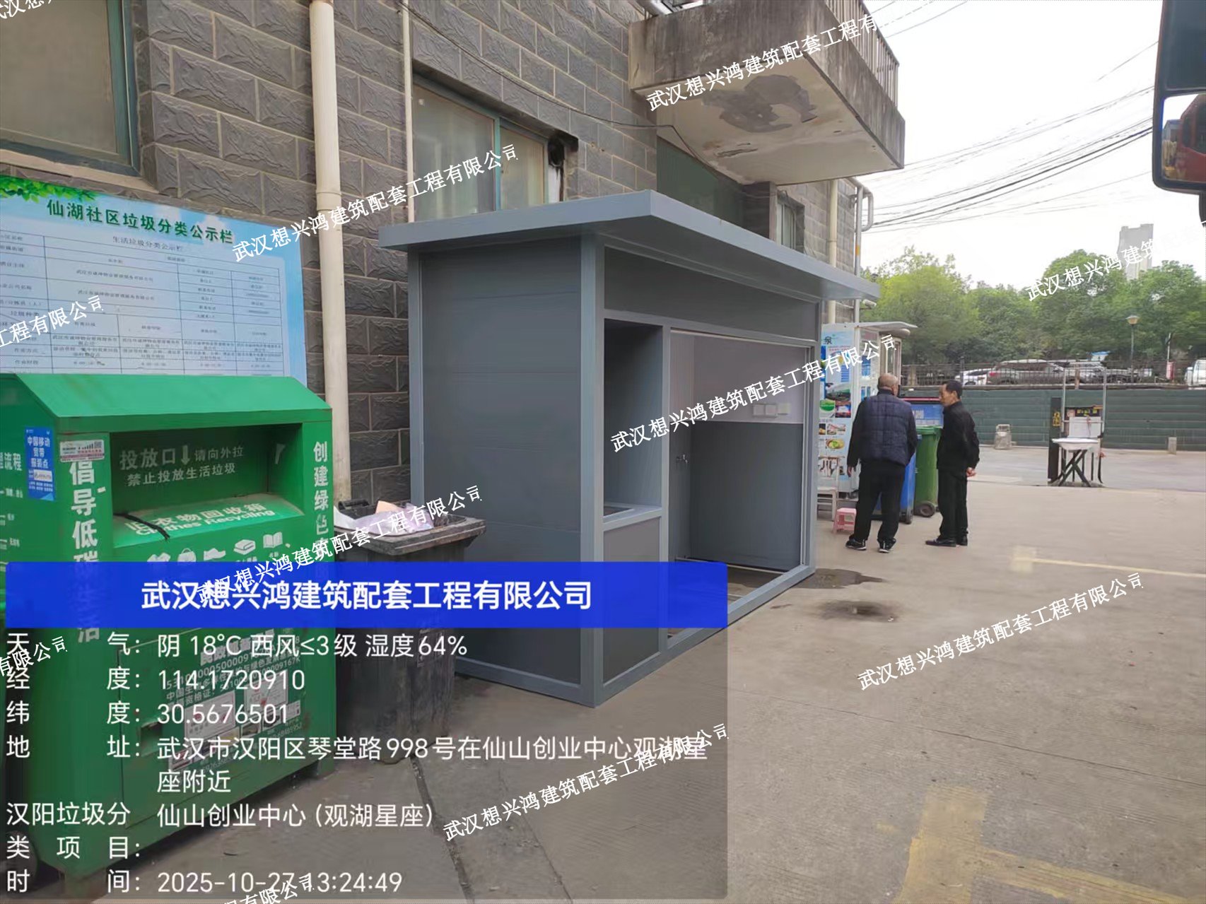 武漢想興鴻建筑配套工程有限公司工廠定制漢陽市政垃圾分類房安裝現場案列,解決垃圾分類臟亂差問題,綠色環境新風尚。批量發貨完成各大小區垃圾分類實地安裝,每一個小區都有想興鴻員工忙碌的身影。
